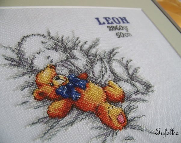 Когда-то давно, ещё кажется года 2, а может 3 назад, видела метричку с черно-белым малышом и цветной игрушкой по-рисунку какого-то японского художника, а метрику вышивала Енечка, для своего шефа, вернее для деток шефа. И так она мне тогда запала в душу, что взял для себя на заметочку эту картинку мой мозг (мой муж всегда удивляется, откуда у меня столько места для запоминаний в моей голове?)))) А вот и пригодилось.... Моя сестренка ходила ещё беременной, а я начала поиски той самой картинки/ схемы/набора по-рисунку японца или японки.... Отыскала давешний пост на 7е, где Енечка показывала свои метрики, но там все как-то сложно было... Потом нашла, что производит сейчас эти наборы RTO, а где ж его достать? Ну, я как-то немного распрощалась с этой мыслью вышить "японского малыша", даже перекинулась на другие метрики, но вот как-то все не отпускало... И вот ведь судьба... Захожу в немецкий интеренет-магазин, в котором уже "стописят" лет ничего не покупала (а зачем, если лентяйничаю?) и глазам своим прямо уже-таки совсем не верю. С чего бы это немцам, да русского-то захотелось?? И ведь, действительно, в продаже имеются и RTO, и Riolis, и ещё всякая всячина.. и даже винтажные прибамбасы (игольницы-чайники, резачки бронзовые, ну и т.д.), о которых когда-то все вздыхали. Вот так повезло! Купила, через день наборчик был у меня, заменила канву на лен, ну и пошло все вышиваться под зимнюю олимпиаду, да так скоренько))) Циферьки нижние, конечно, балде надо было левее сдвинуть, но потом, когда попробовала распороть, темные следы и ворсины ничем не могла удалить, пыталась и скотчем, и стиркой, и иголочкой.... и нифига) Ну, наверное, так и должно было остаться. Вот такая история "с географией". Моему маленькому племяшке ещё "до фени", конечно, все эти вышивалки, но его родителей вроде порадовала. Комнатка у него зеленая, от того и паспарту было решено сделать с зеленым отливом.